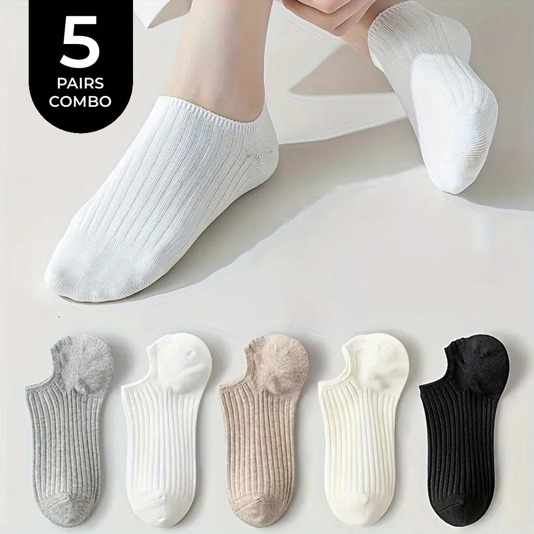 Enjoy comfort and style with 5 pairs of Non-Slip Solid Color Invisible Socks. These unisex socks are breathable, lightweight, and perfect for casual wear, boat shoes, and dressy outfits.